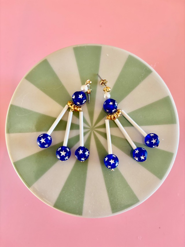 フランスヴィンテージの材料を使っているので少量限定です。 青に星がついててとても可愛いいピアスです。 ★イヤリングに変更やアレルギー対応も行っております。