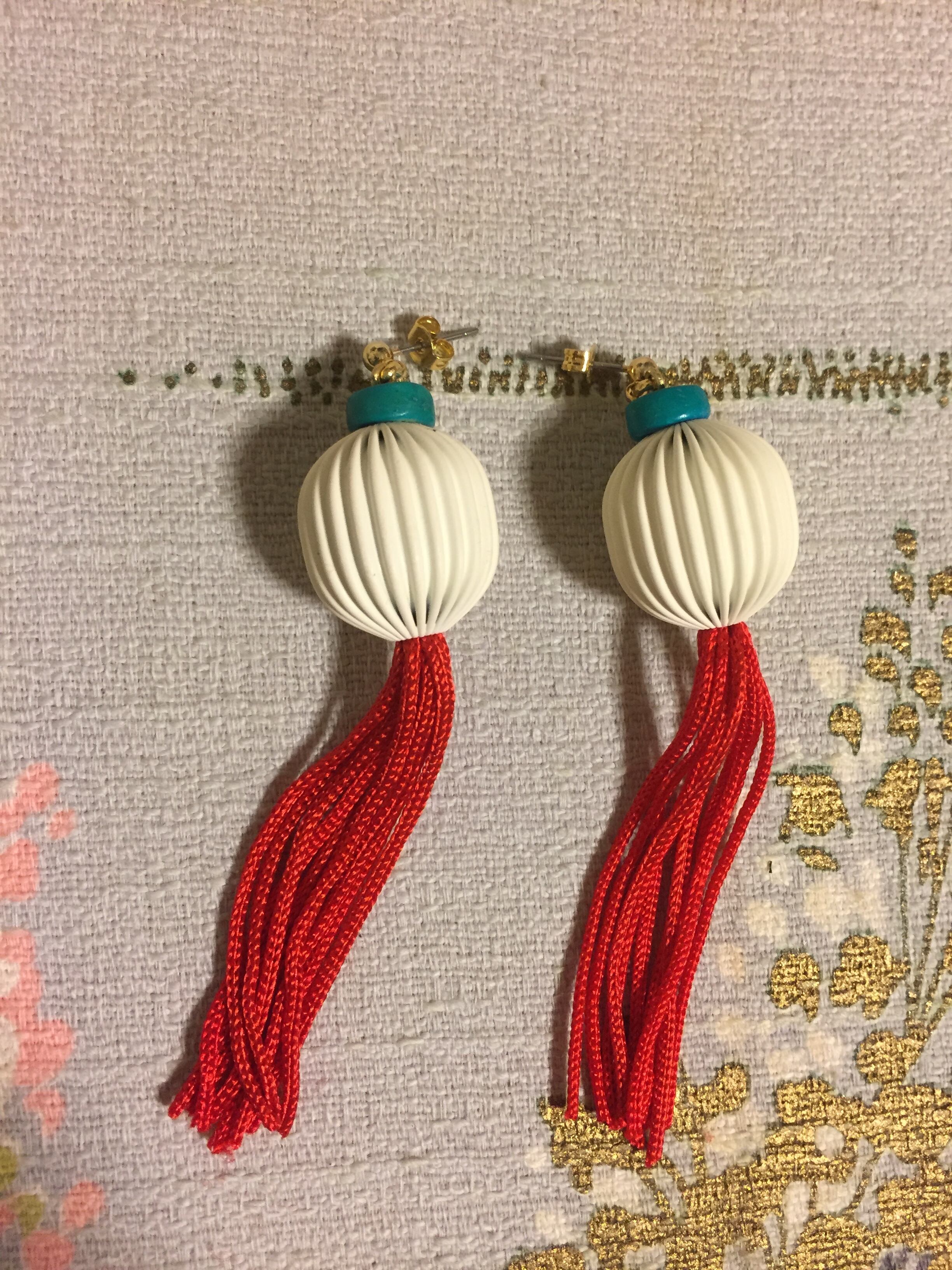 ランタンをイメージしたピアスです。タッセルが可愛いいです。