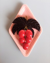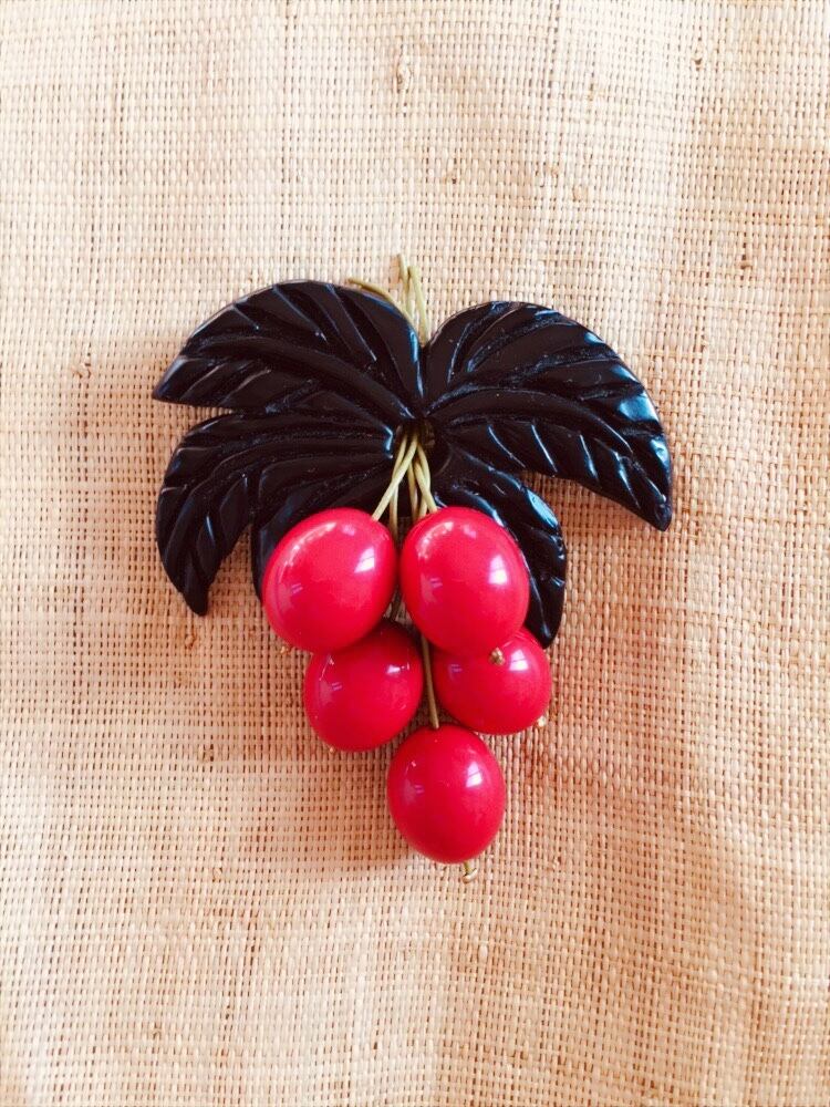 真っ赤楕円のパーツが大人っぽい、40sスタイルのブローチです。