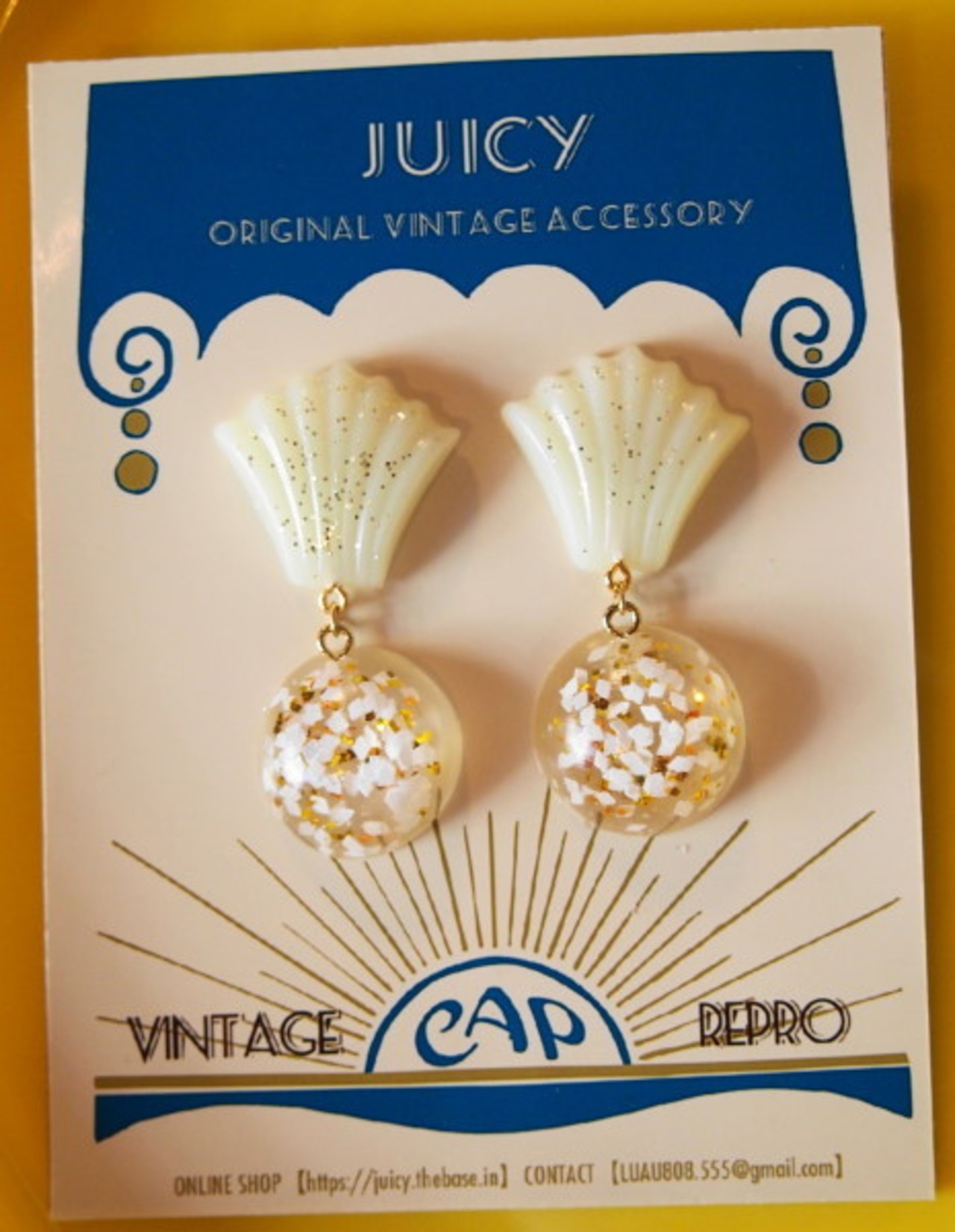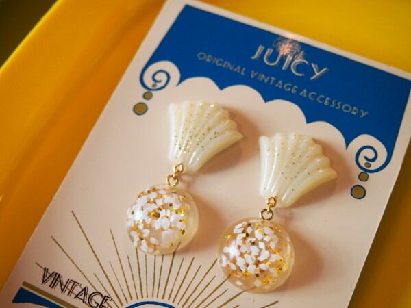 お色はアイボリーホワイトのパーツに透明ラメパーツをあしらっています。