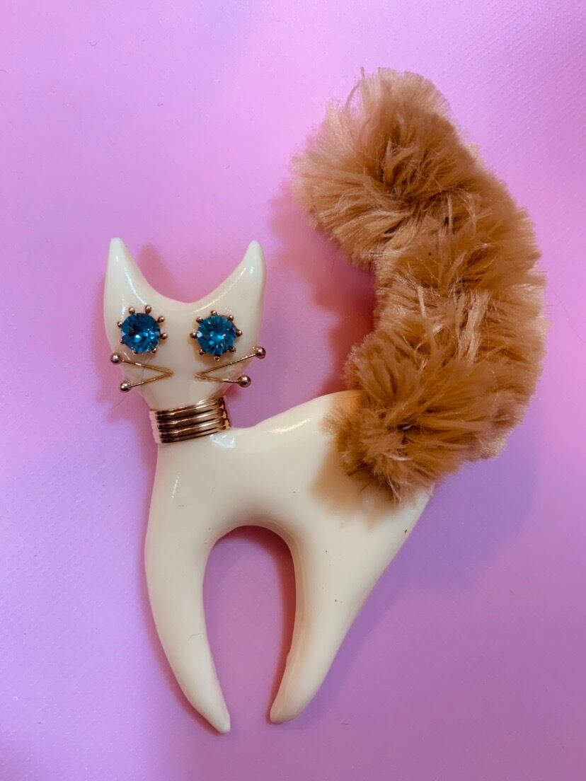 フワフワのシッポが可愛いい猫のブローチになります。