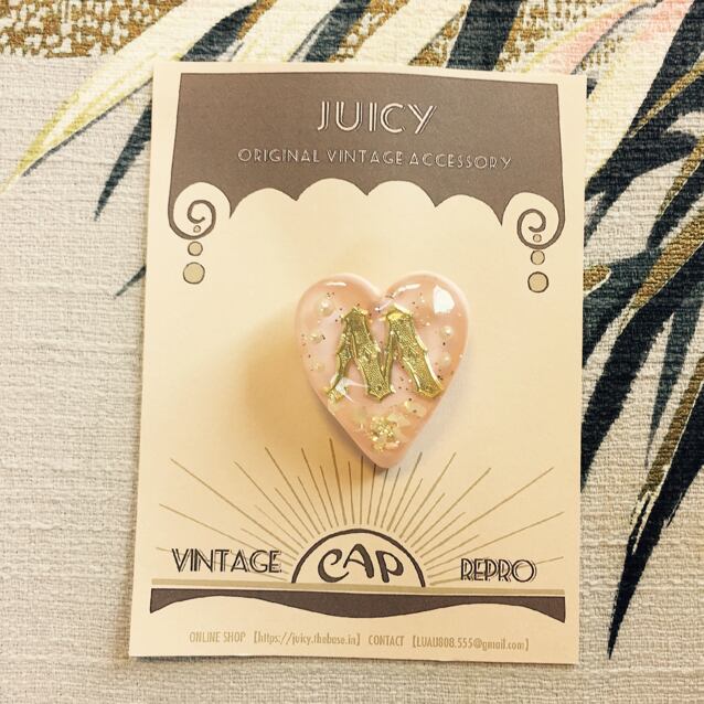 アルファベット、シェル、ラメが埋め込まれた大変美しいブローチです!