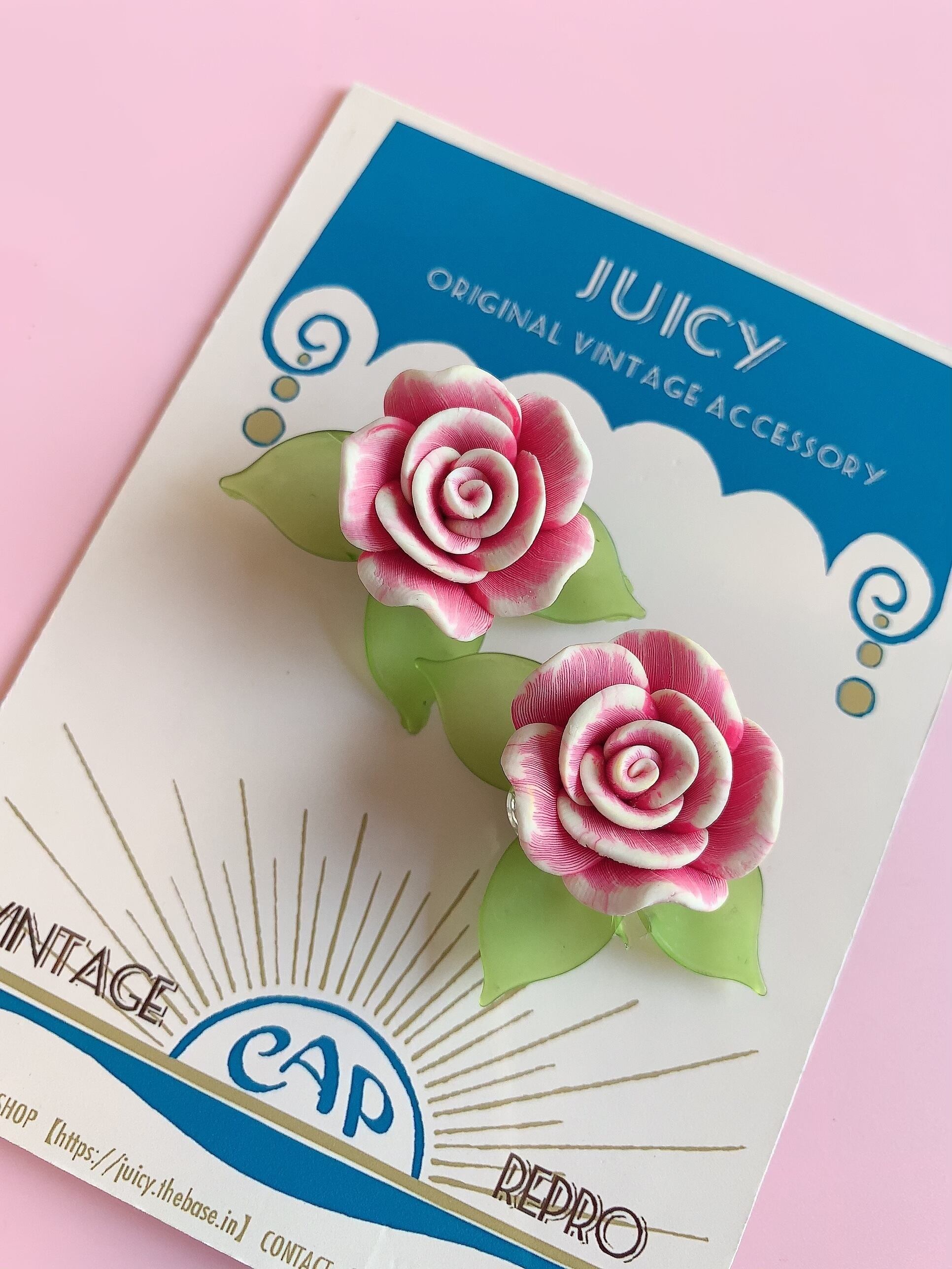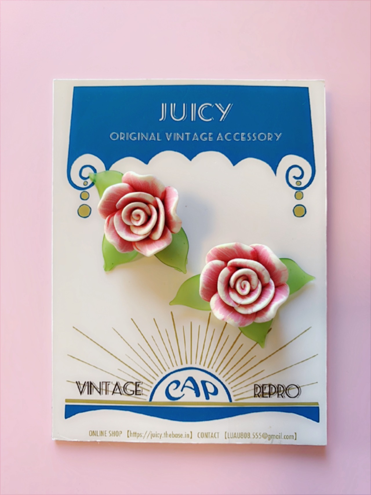 アンティークローズが描かれてる可愛いいパーツのピアスです。