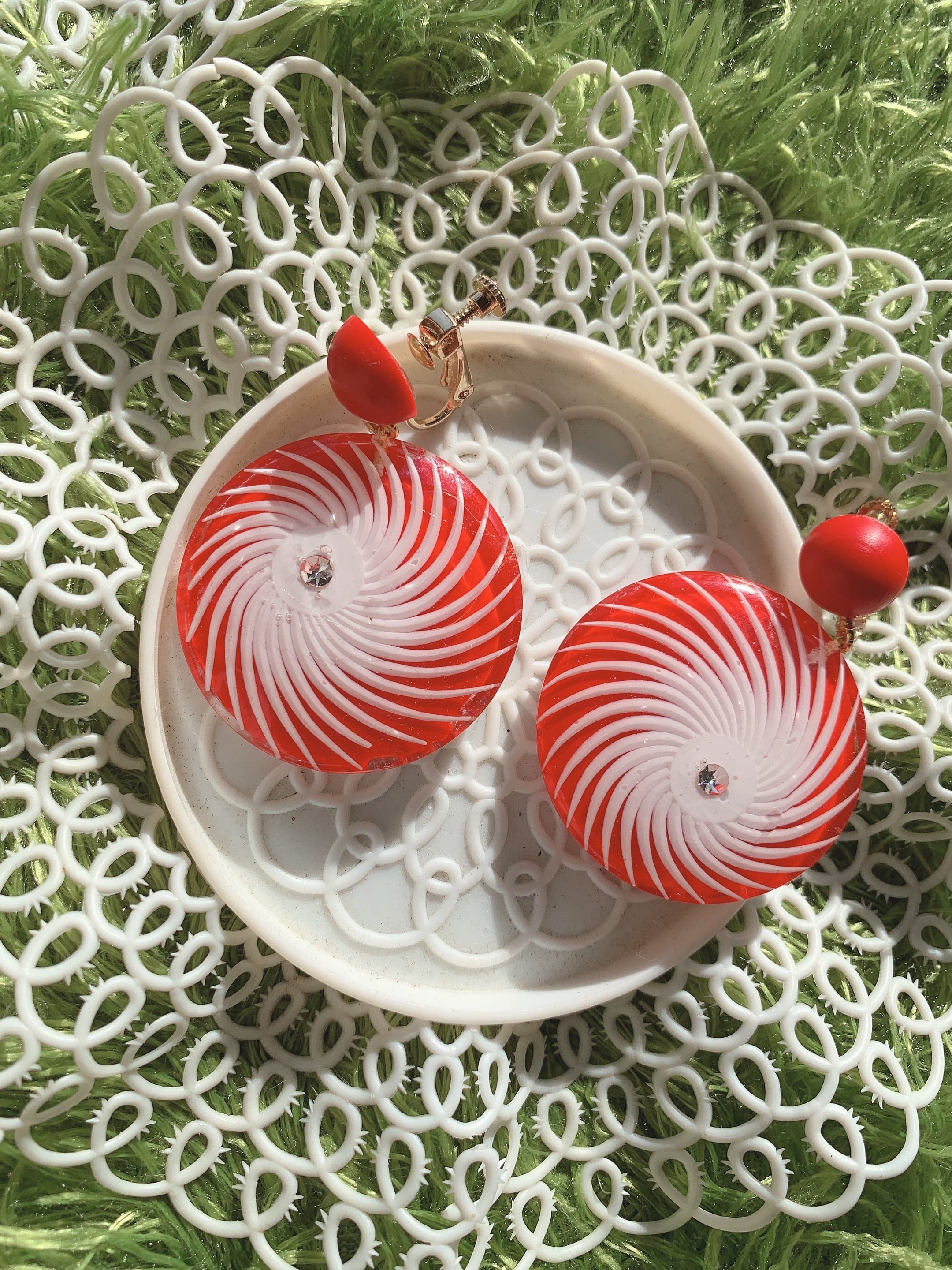 50s のvintageパーツを閉じ込めたキャンディみたいな可愛いいピアスです。イヤリングもあります。