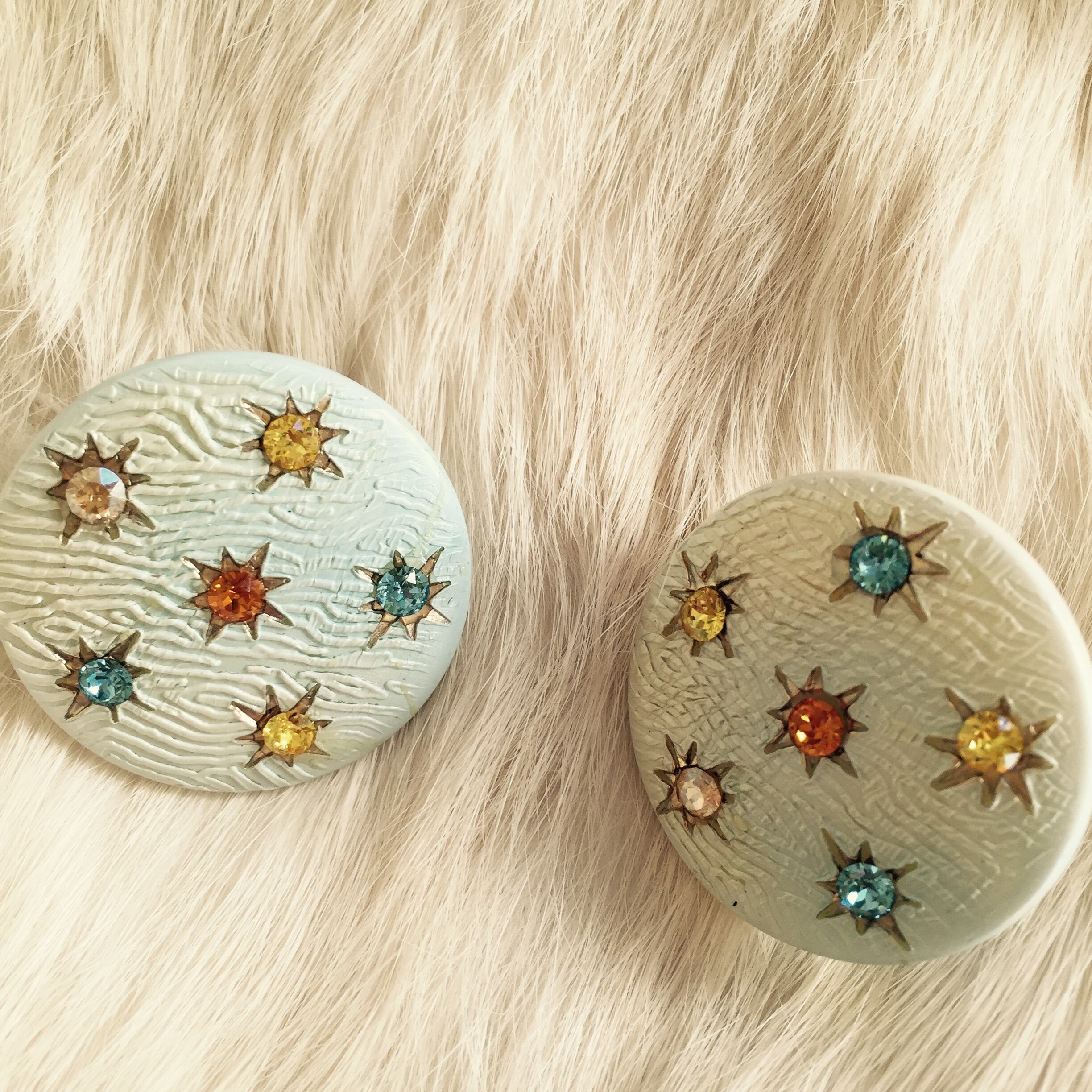 50sパーツを使ったイヤリングです。カーディガンクリップとお揃いパーツです。