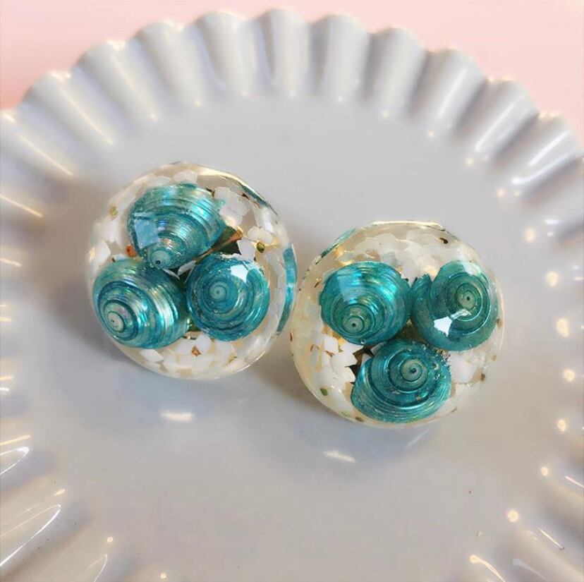ブルーのvintageシェルがまるで薔薇みたいな可愛いいピアスです。