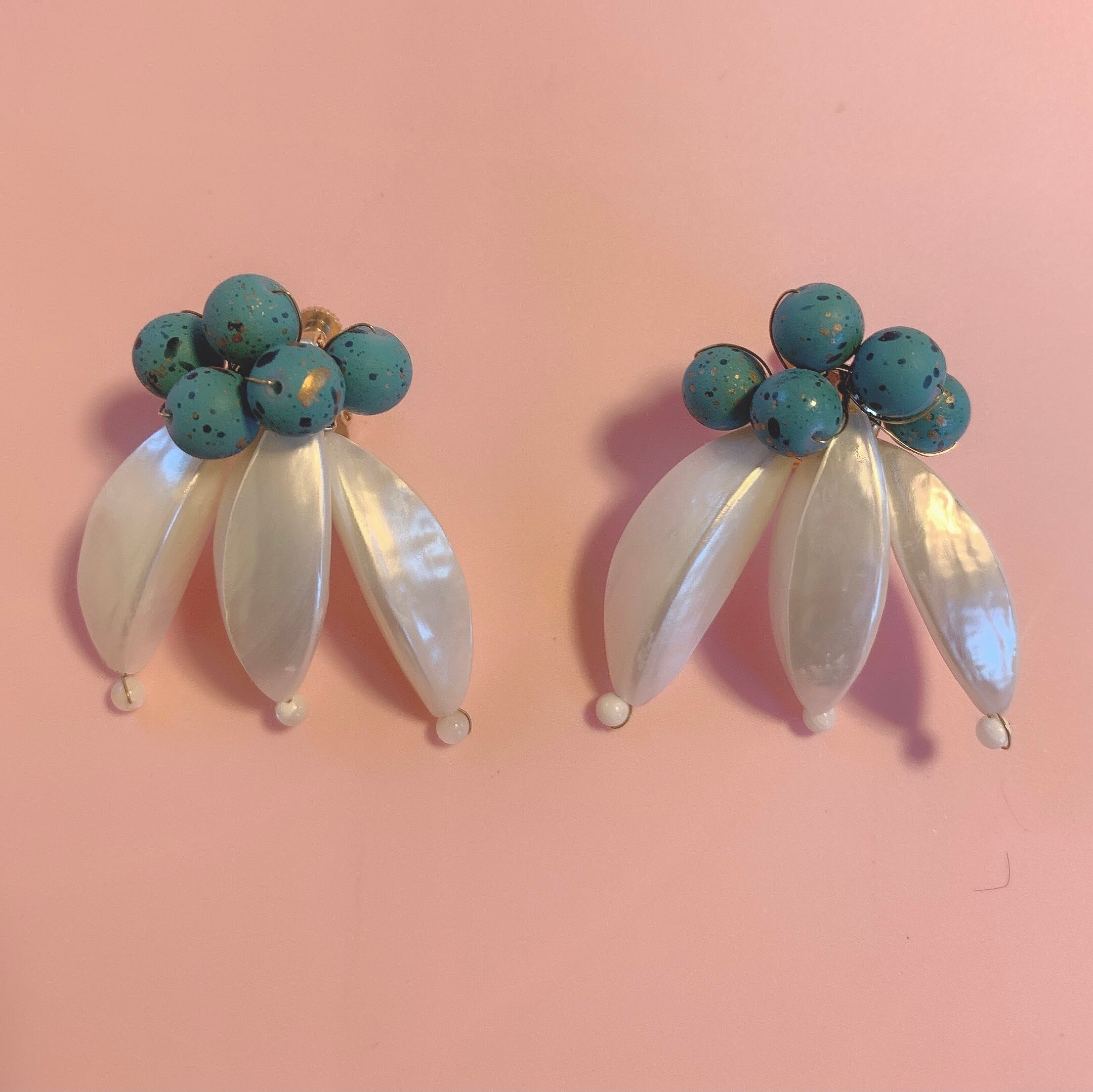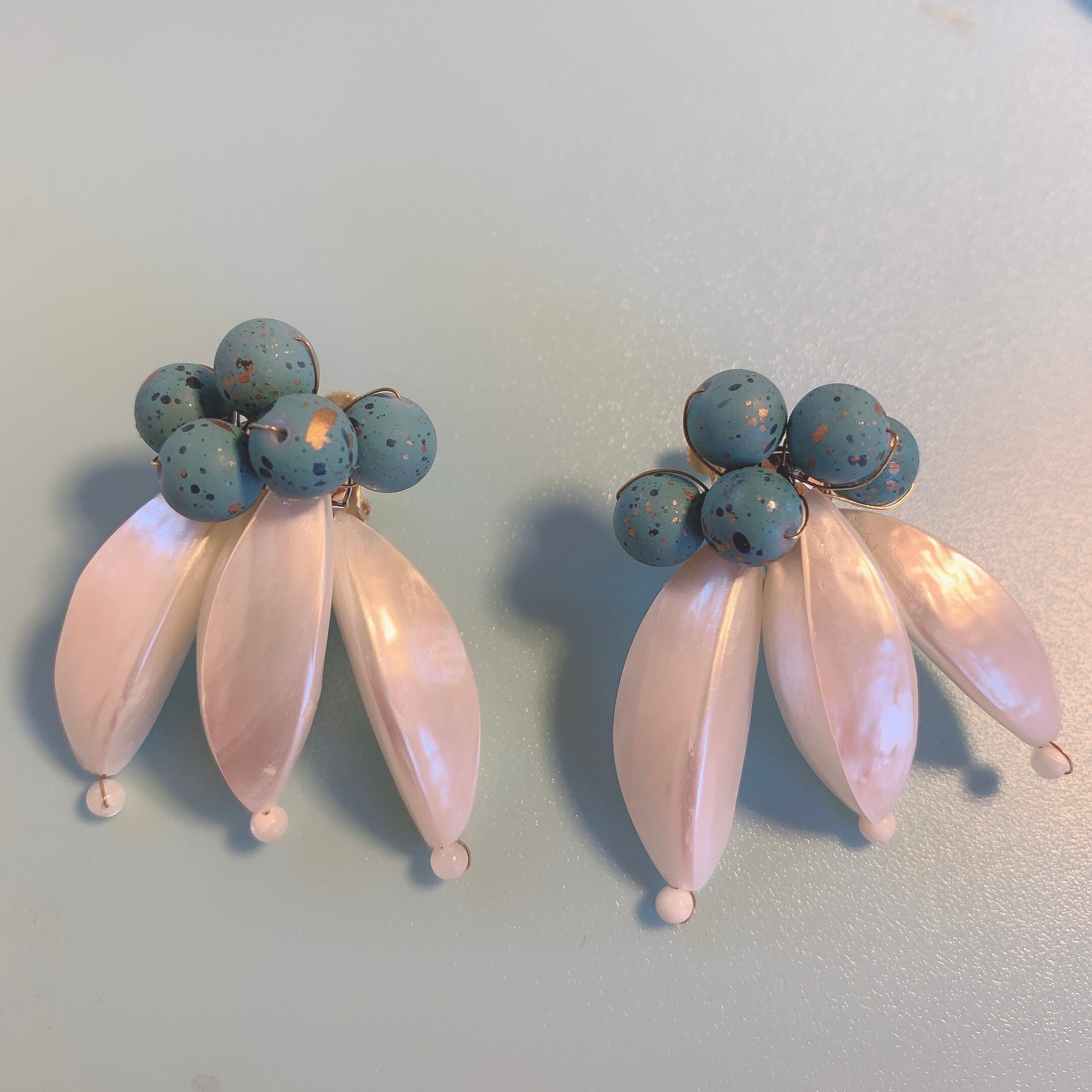 繊細な貝細工でできたクラシカルなイヤリングです。