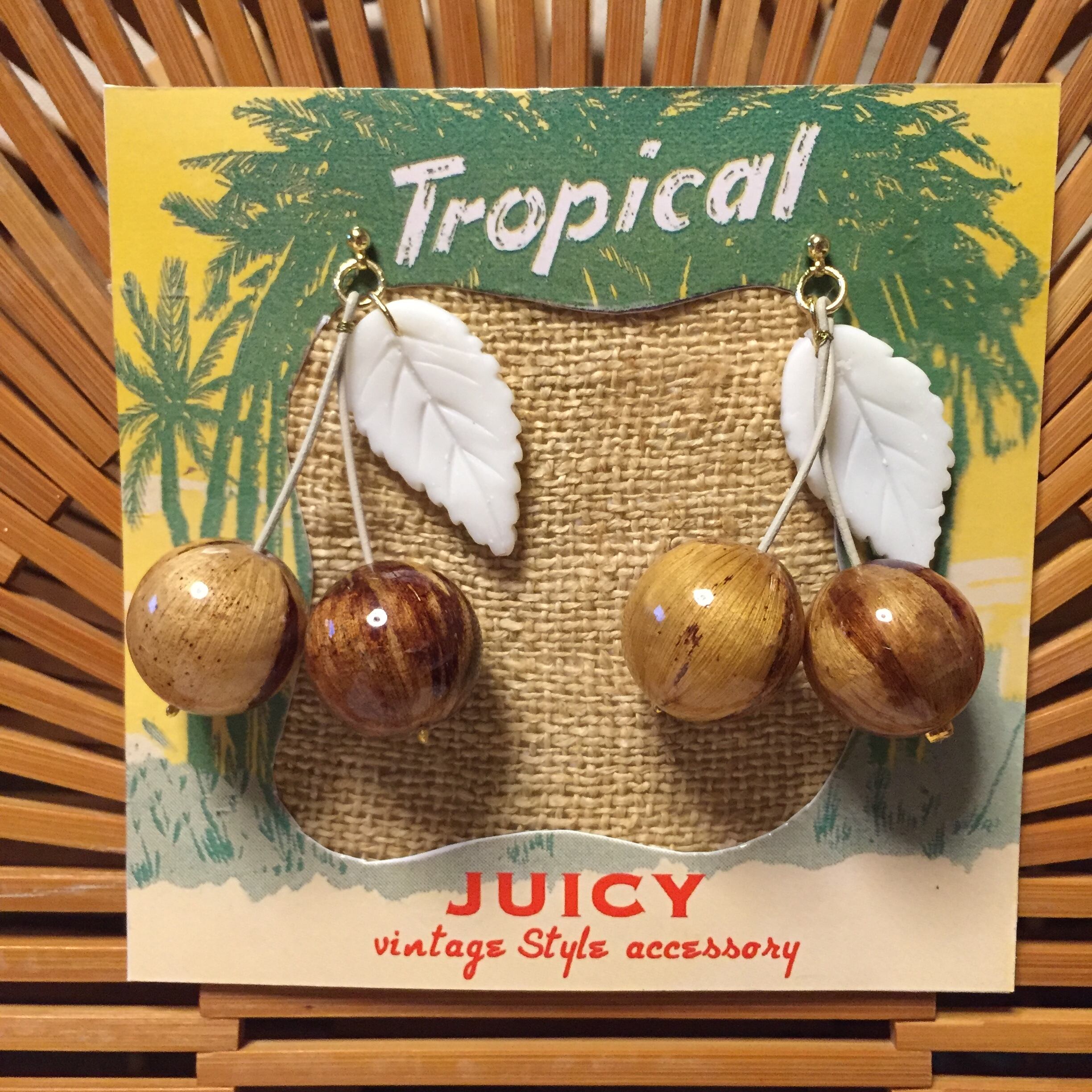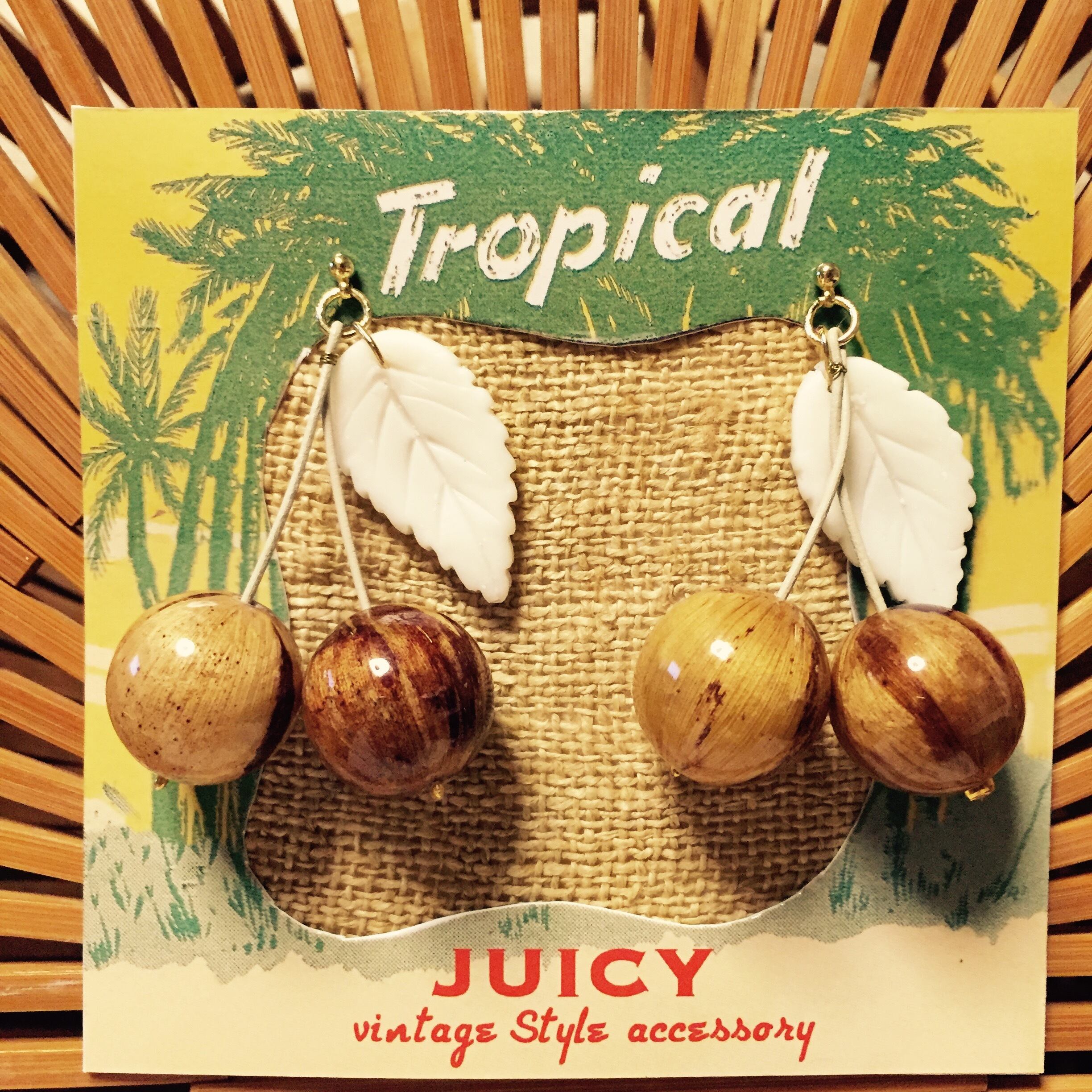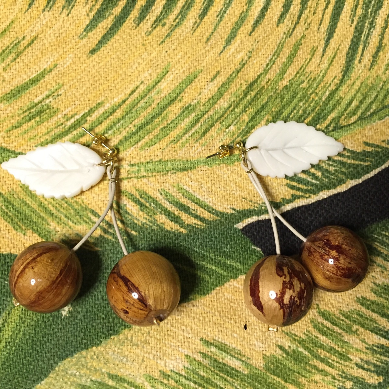 天然素材の可愛いいcherry。いつもより少し大きめの20mm玉を使用。葉っぱはレジンで1つ1つ作ってます。