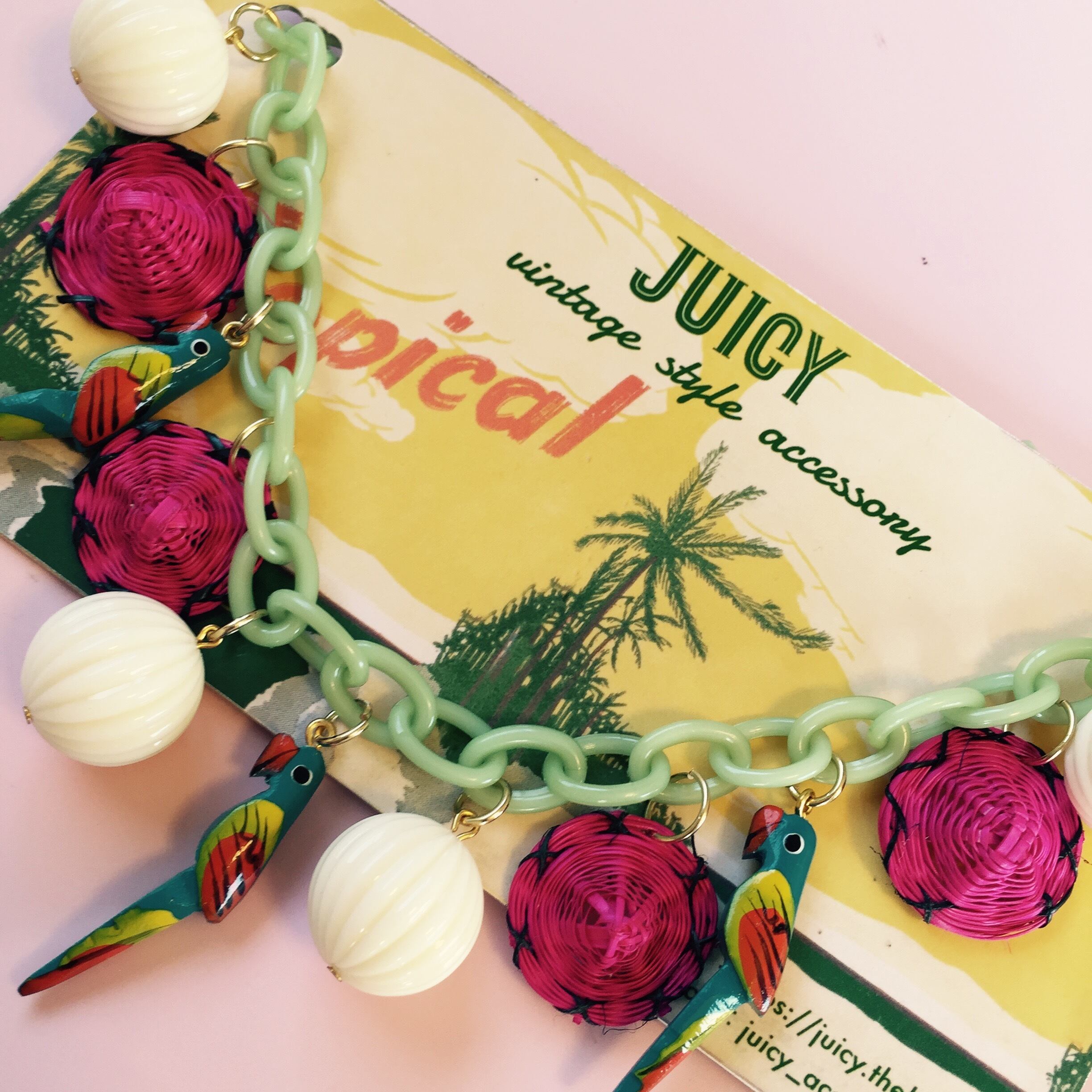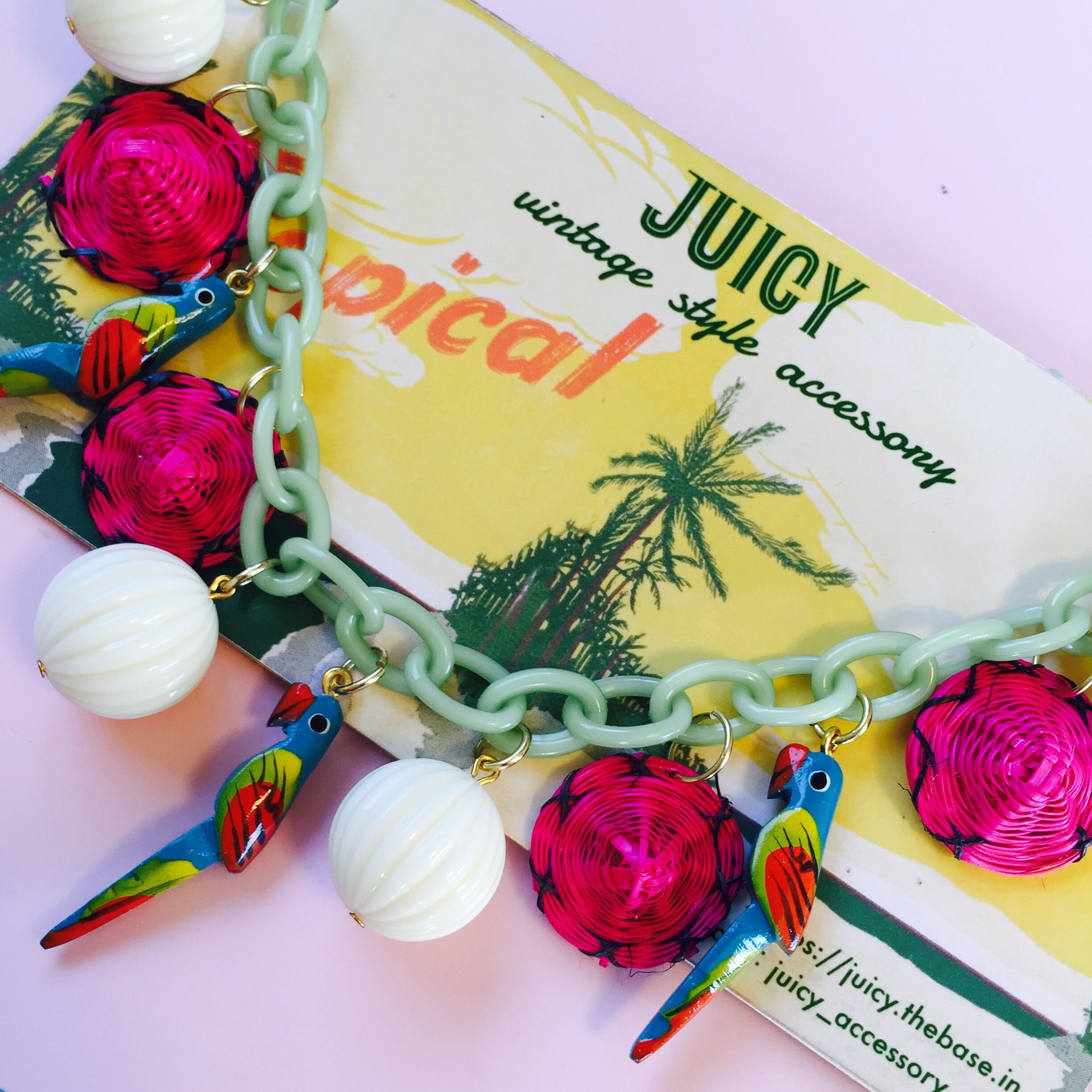 ウッド素材のピンクの鳥さんがハワイアンにピッタリなネックレスです★