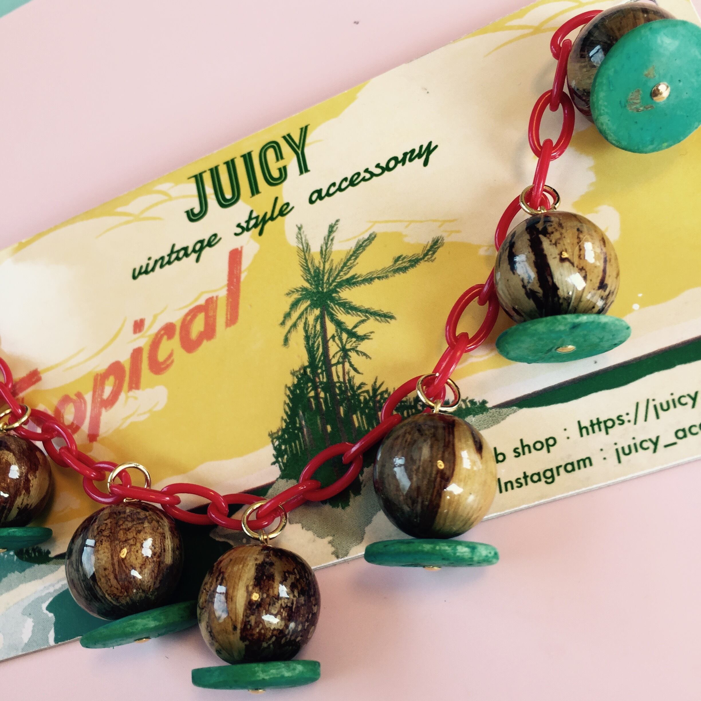 天然素材を使ったアトミックなデザインが可愛いいネックレスです★