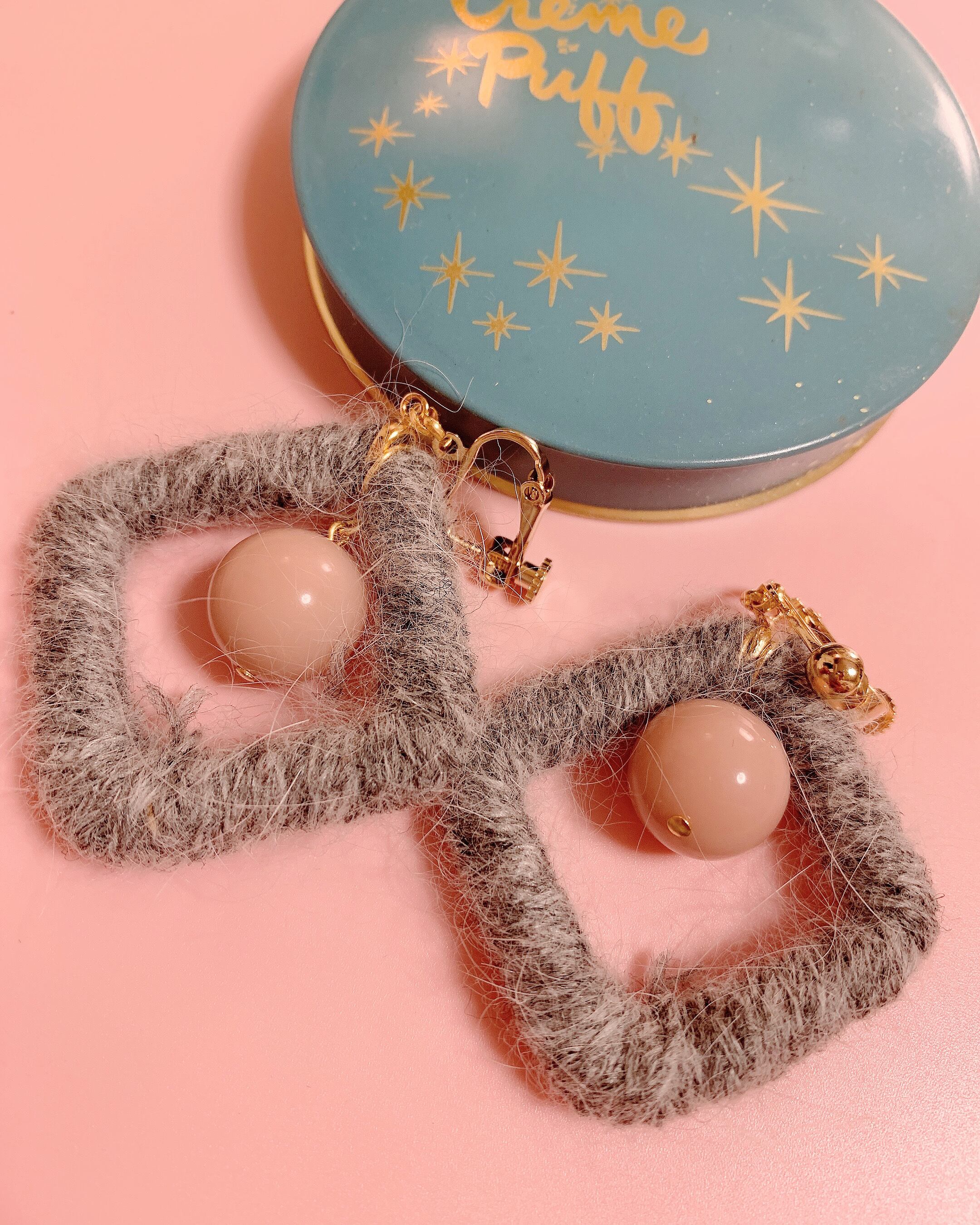 モヘアを,巻いたフワフワのイヤリングです。ピアスにもできます。