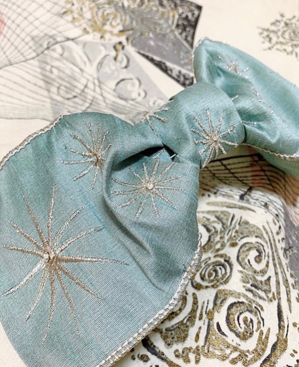 スターバーストの刺繍が可愛いいリボンのヘアクリップです。