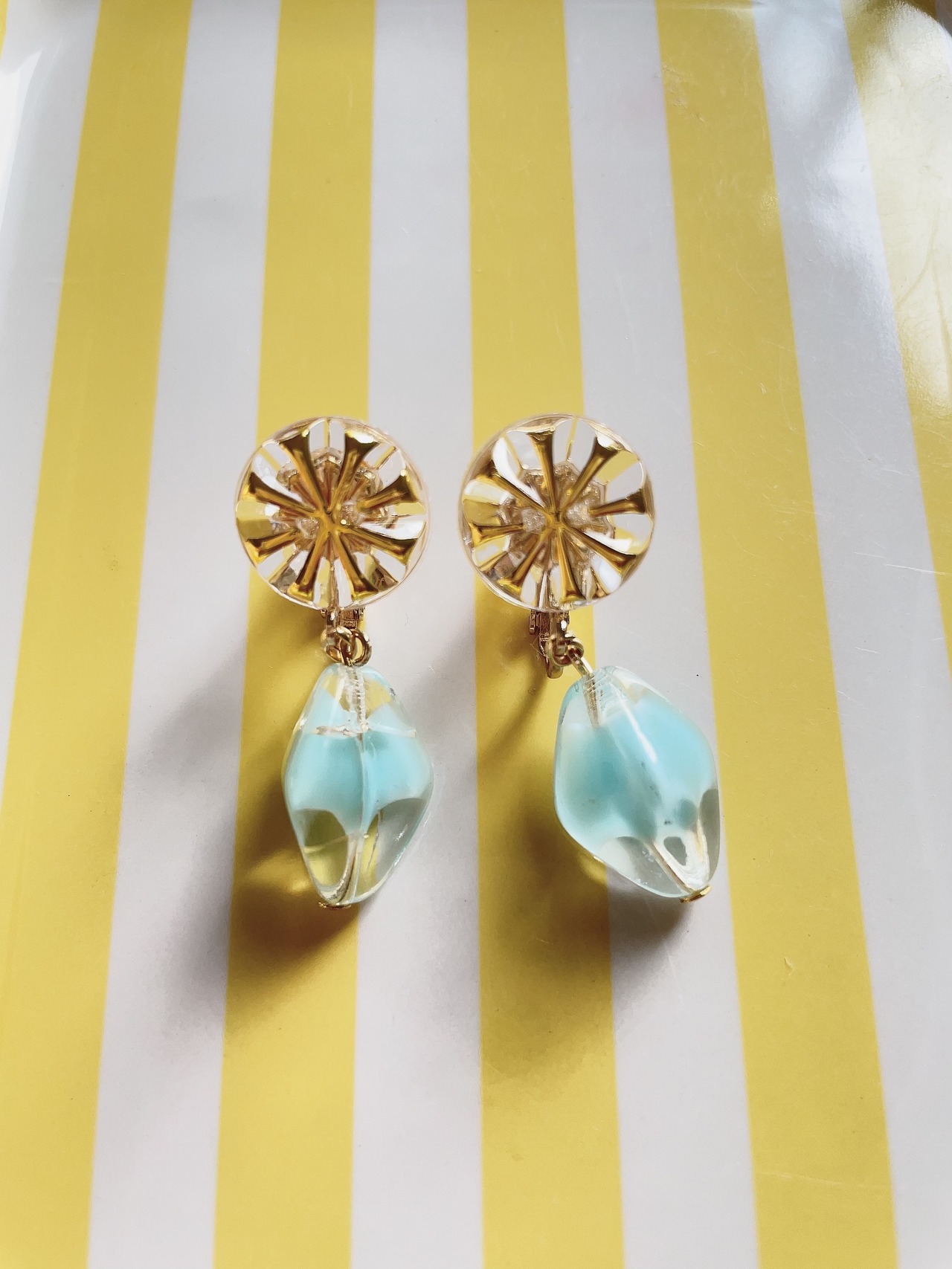とっても可愛い色あいと、耳元のスターバーストが可愛いいピアスです。