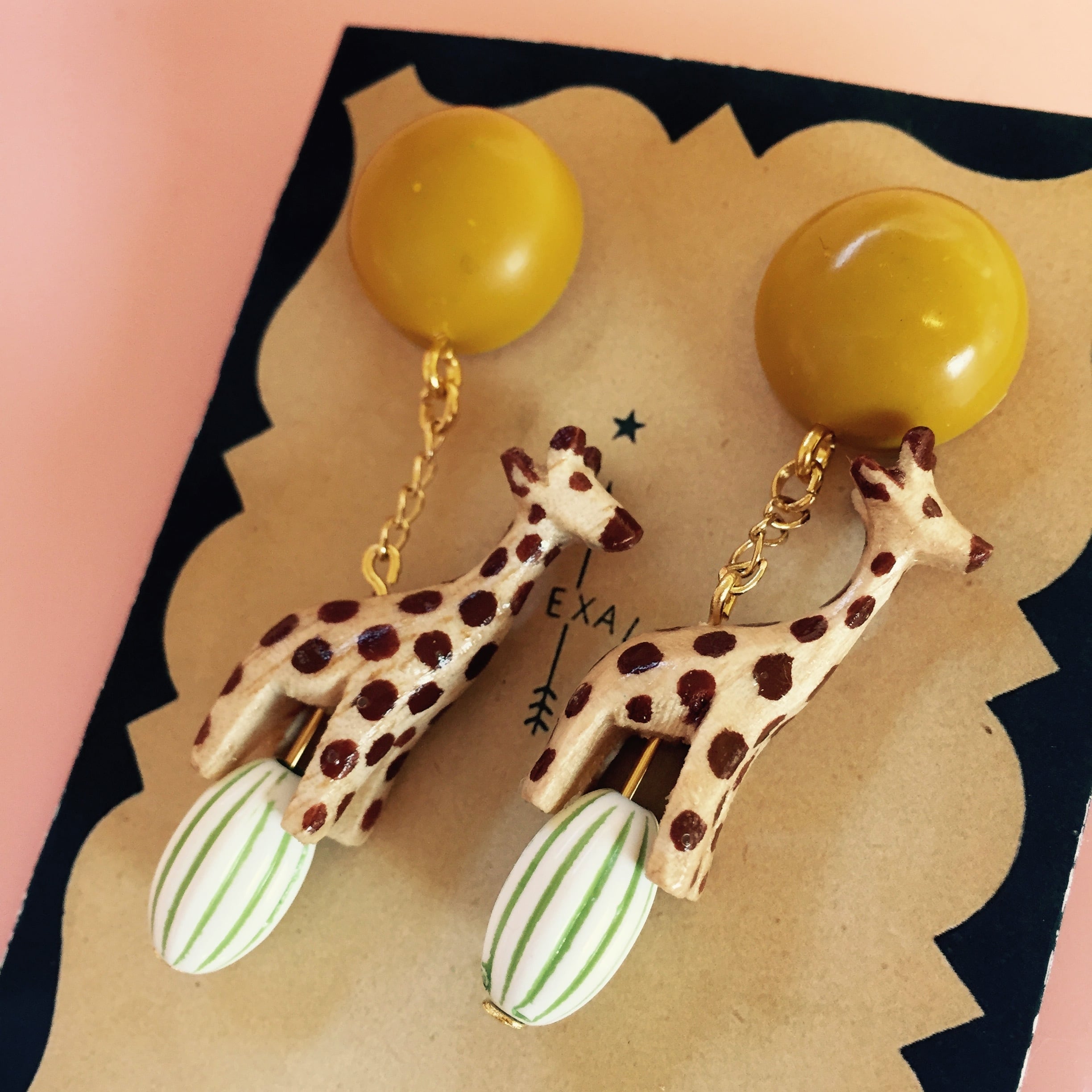 可愛いいキリンさんが玉乗りをしているピアスです★