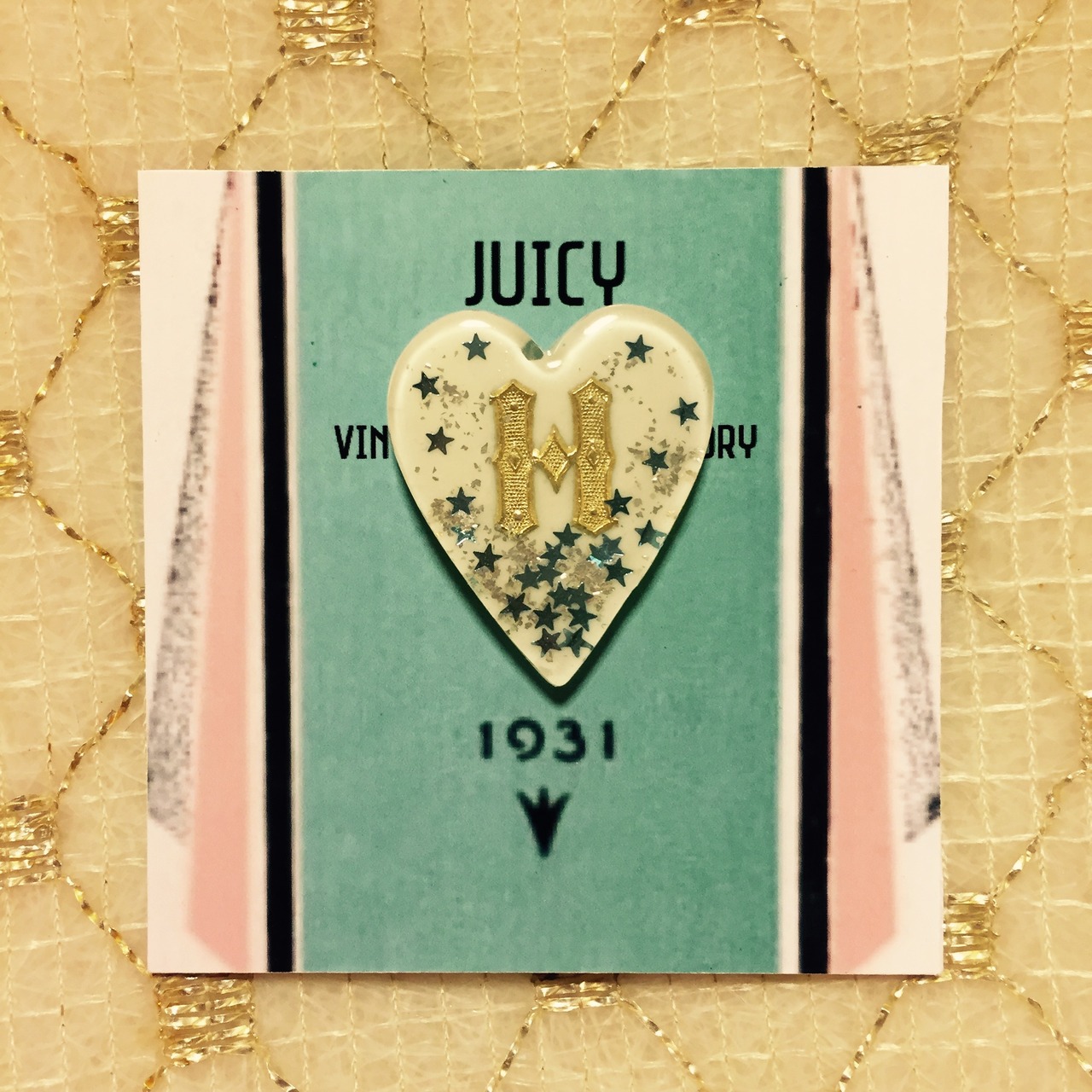 ハートに星ラメ入りのブローチです。お好きなイニシャルをいれて♡