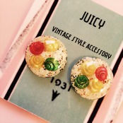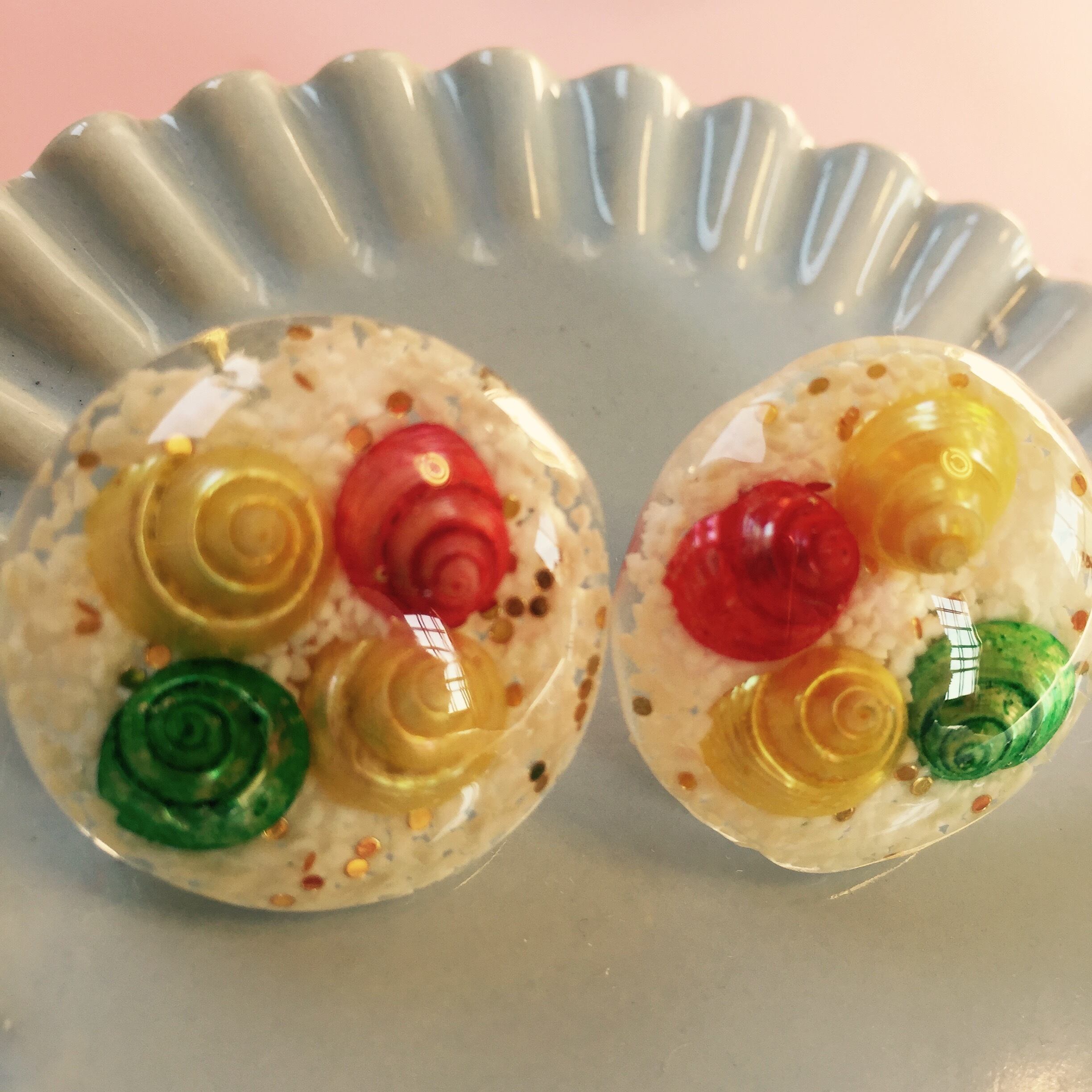 ヴィンテージの貝を閉じ込めた、50s のルーサイトを意識したピアスです。イヤリングにもできます。
