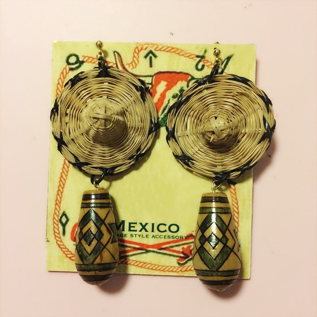 木製パーツとハットがおおぶるで可愛いピアスです。