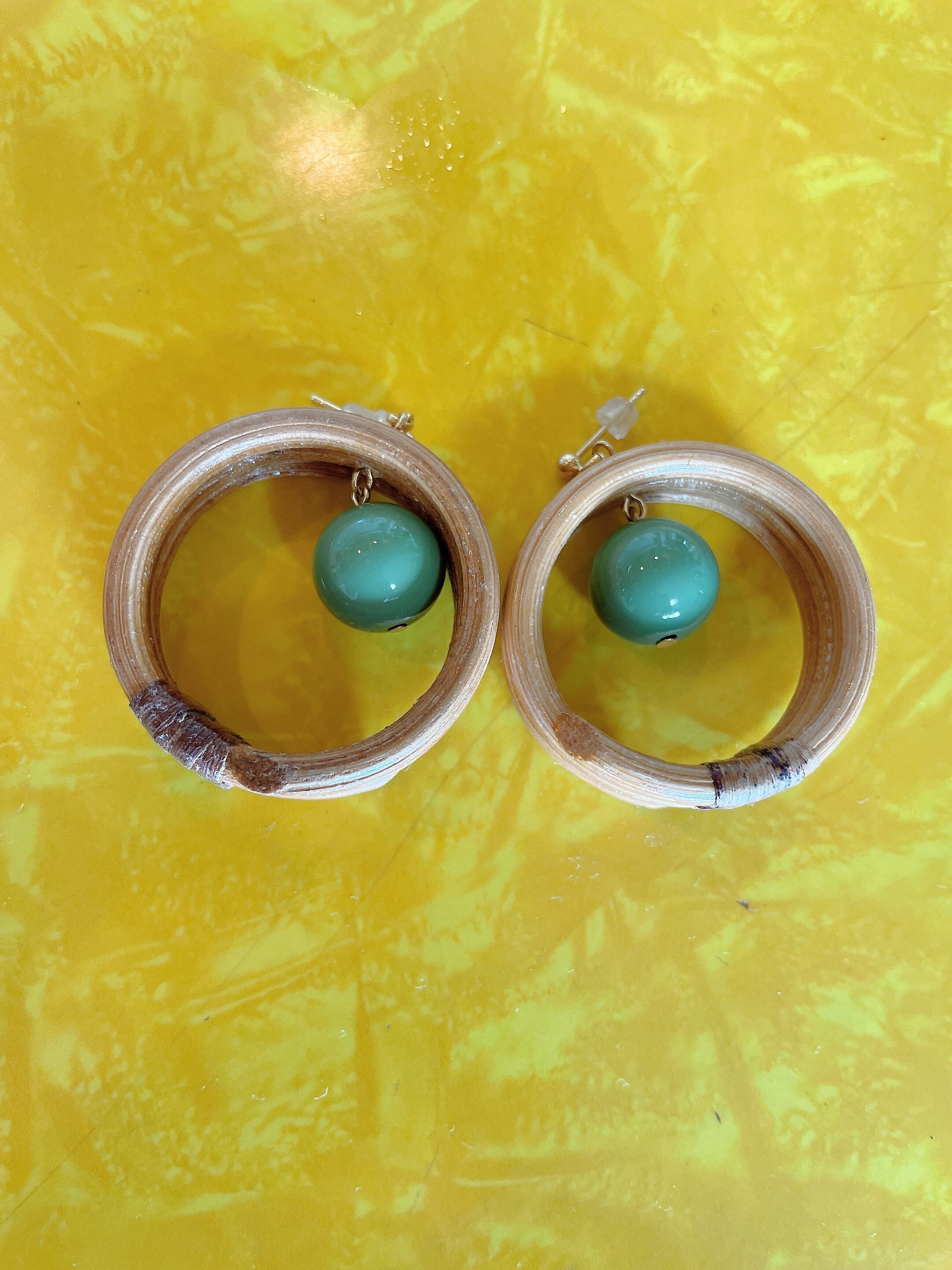 モスグリーンの玉が可愛いピアス。
