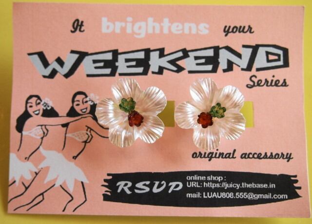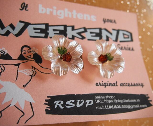 vintageのプラスチックパーツを使ったイヤリングです。花弁やめしべなど全て貴重なビンテージパーツ。。。材料が手に入らないため限定です★