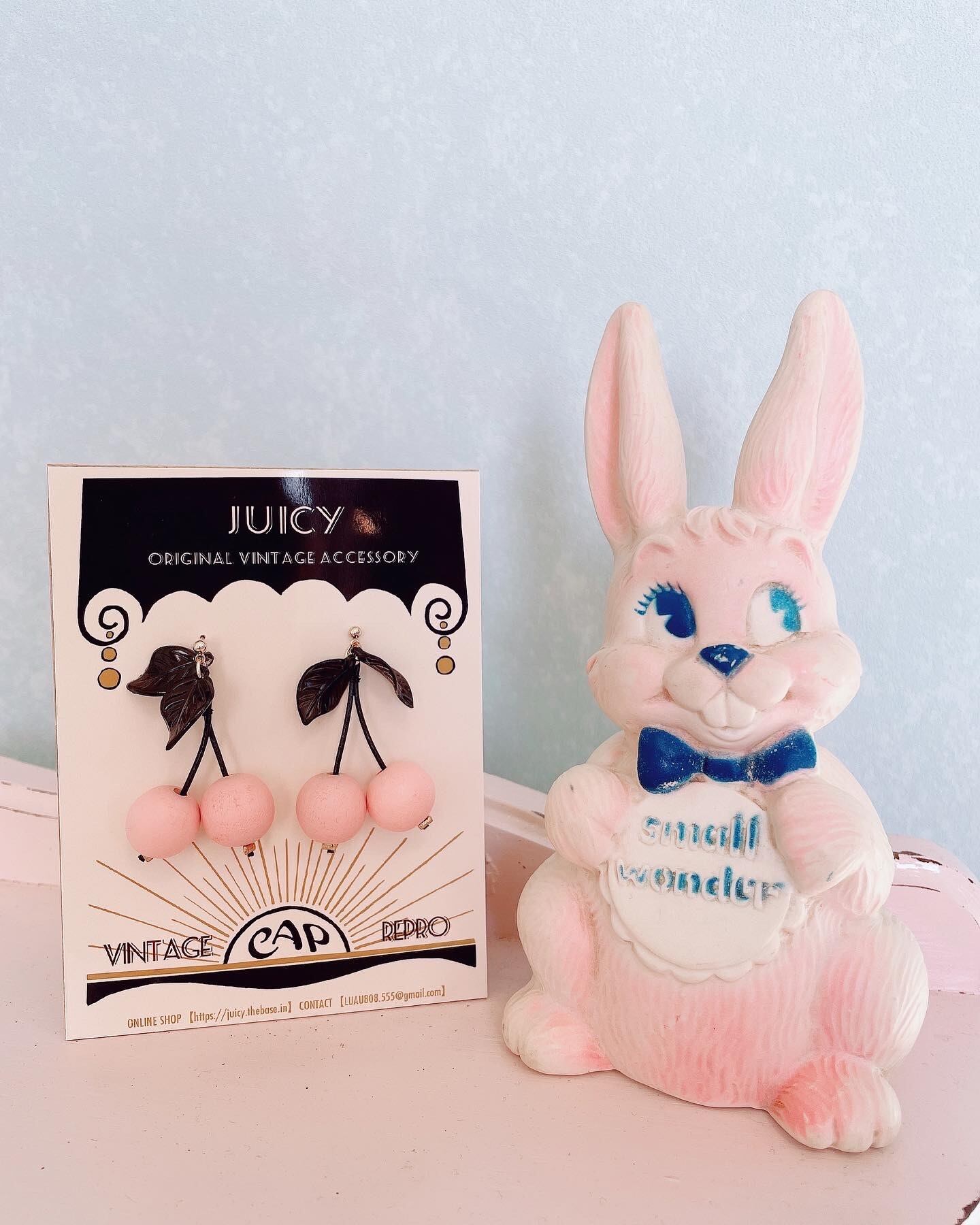 マットなピンクの玉が大人っぽいチェリーピアス。