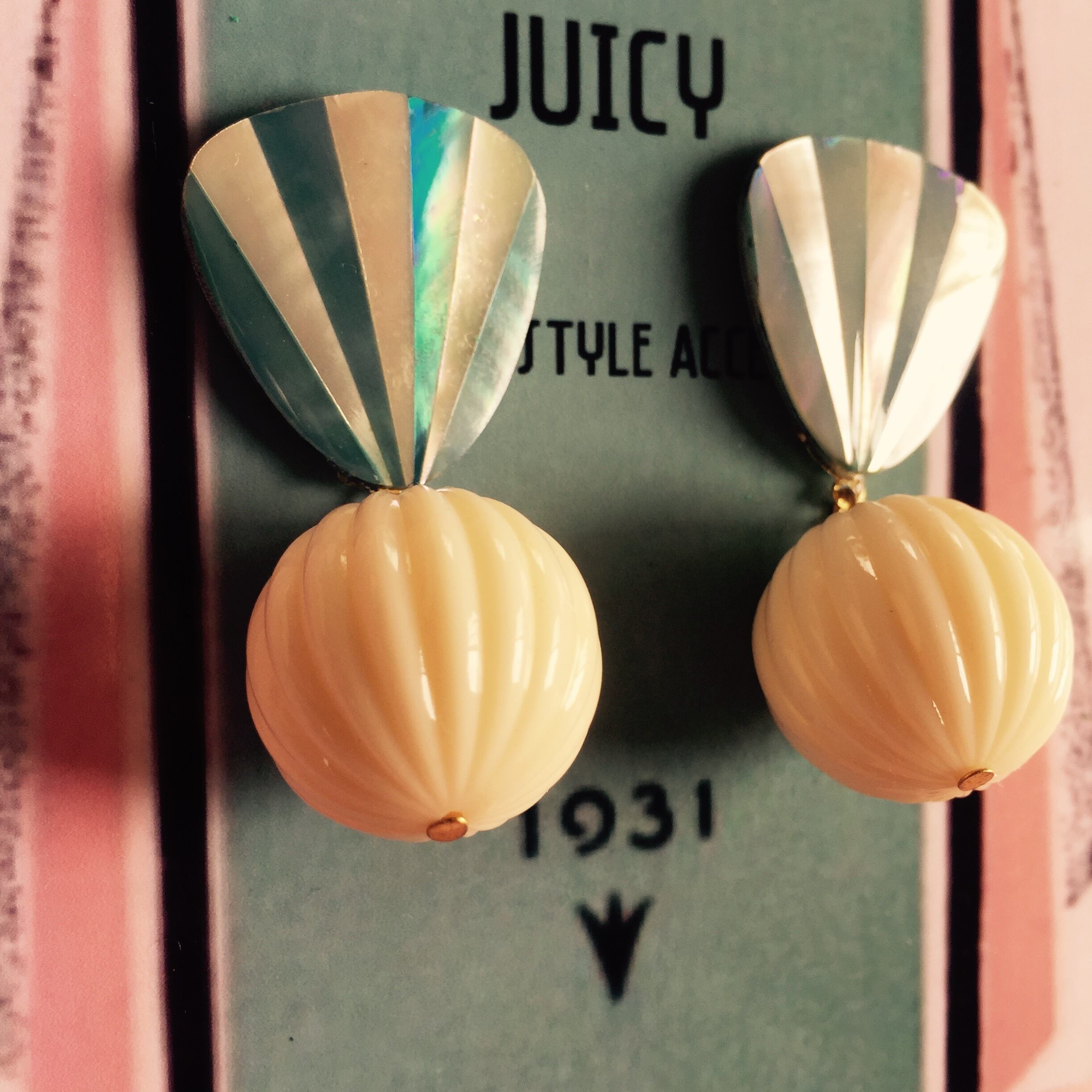 ストライプのシェルが可愛いいピアスです!イヤリングにも変更可能。