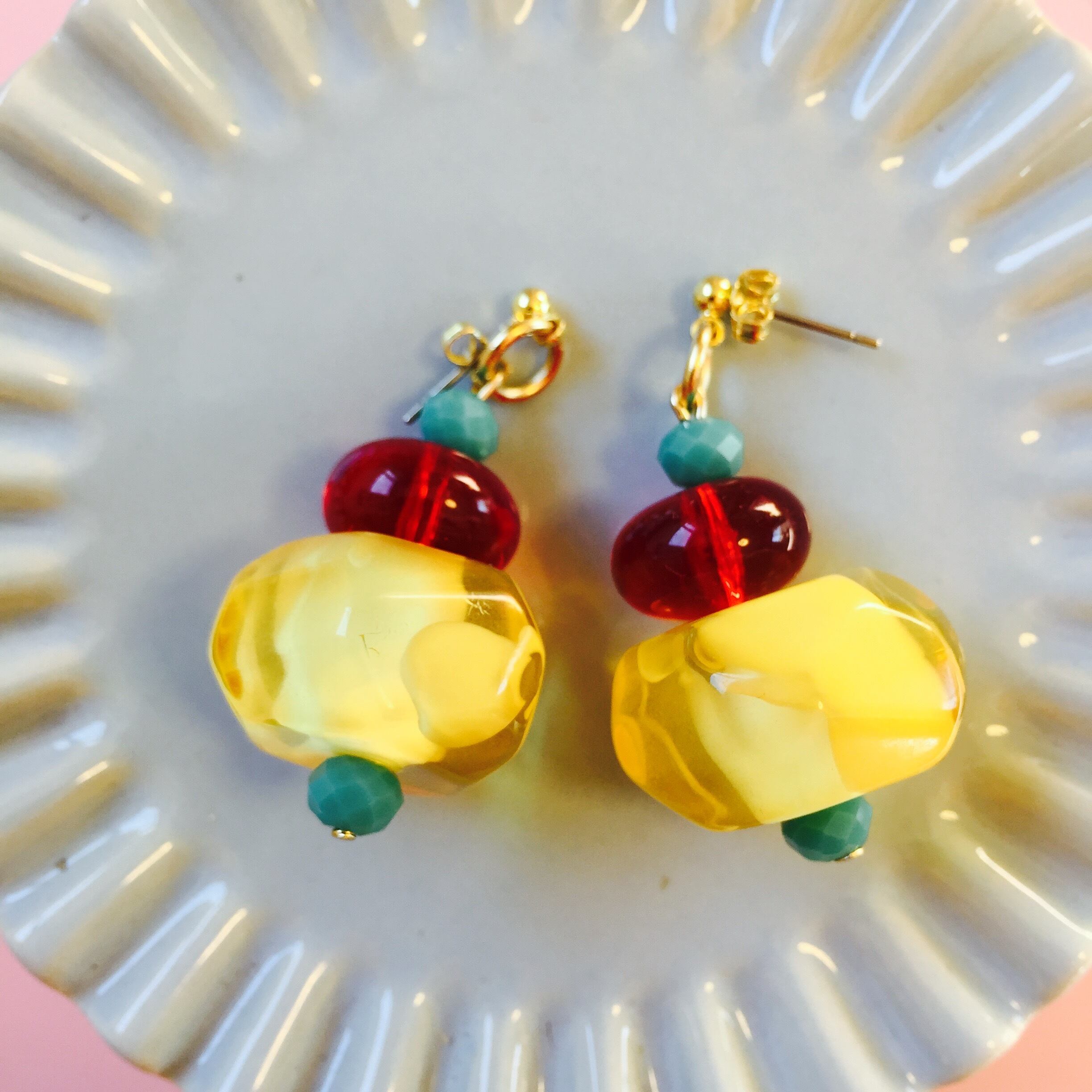 キャンディのような黄色のパーツのピアス。