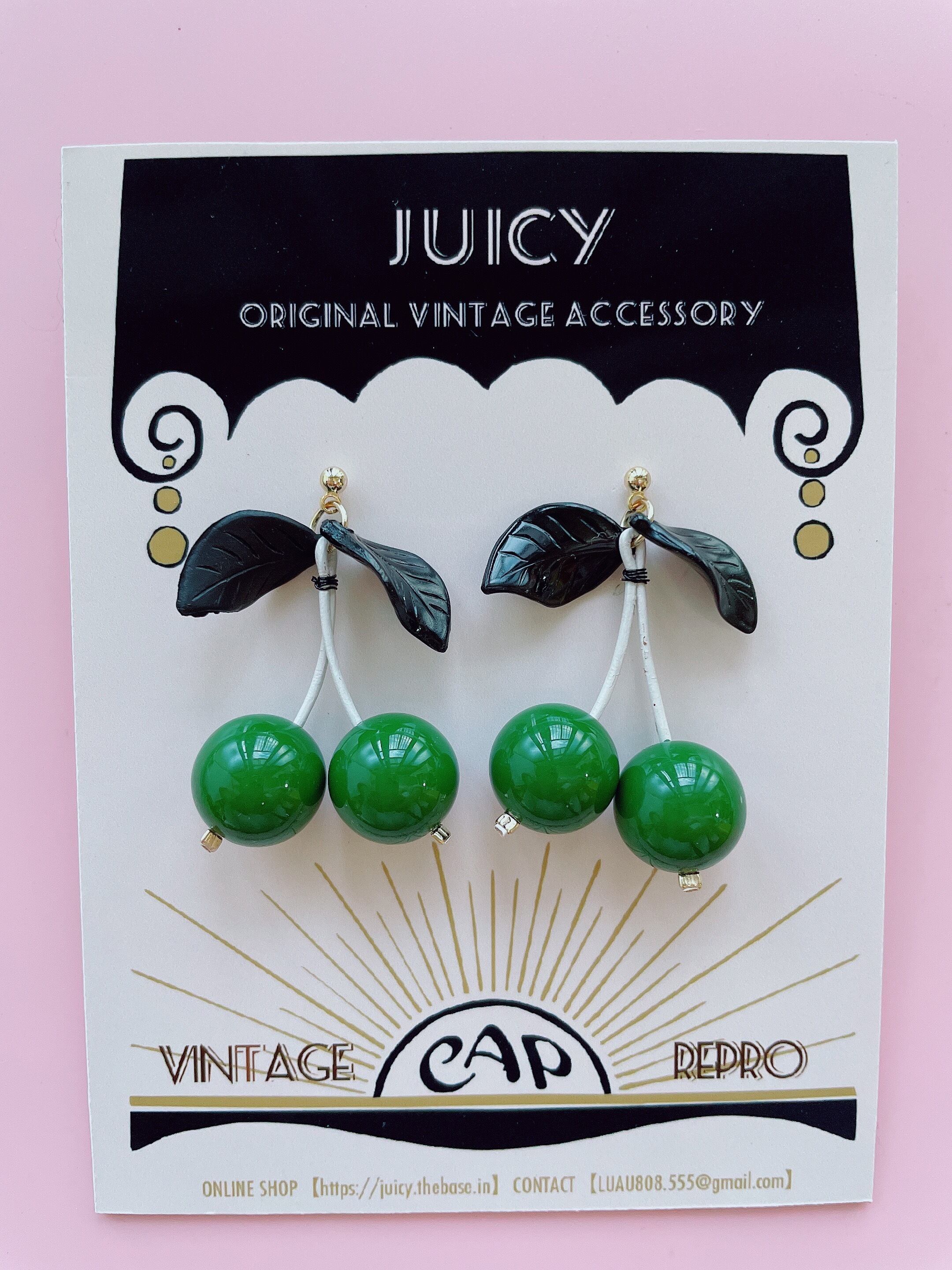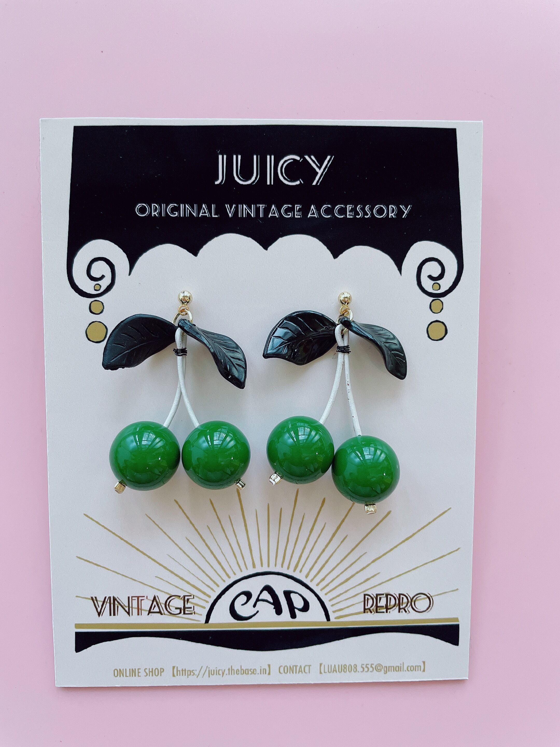 グリーンのチェリーが、フルーツ感たっぷりなピアス!