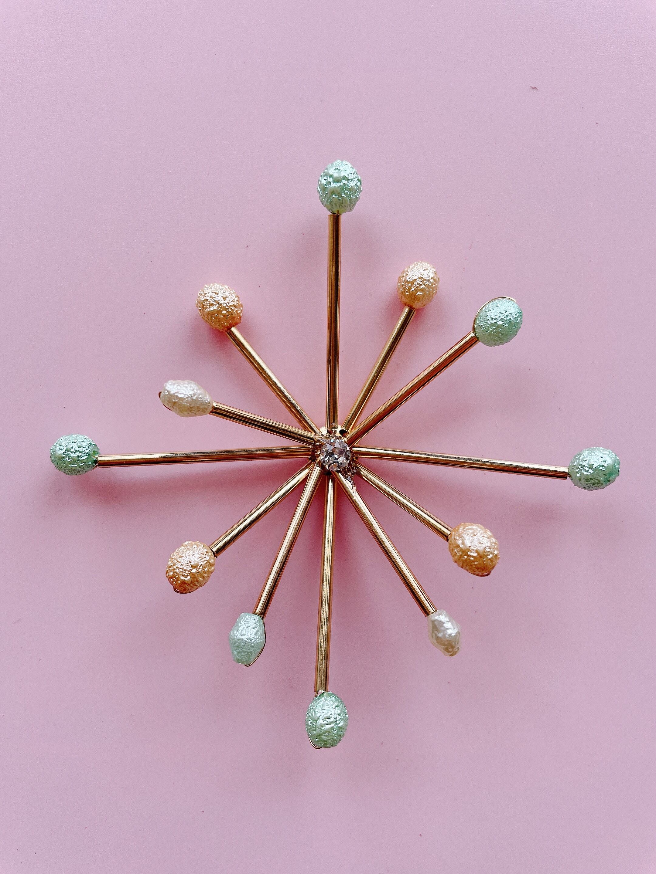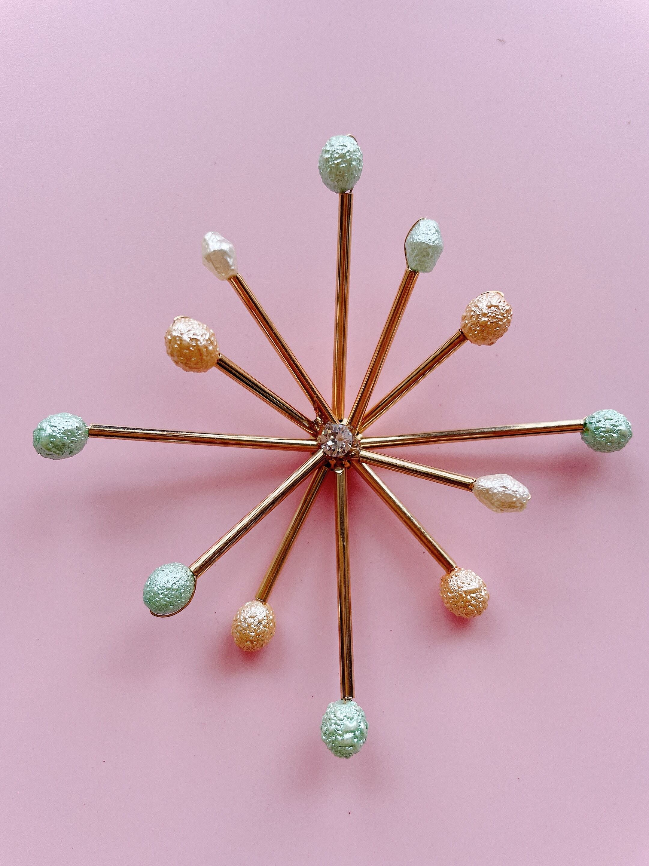 スターバーストピンの先にvintageパーツがついた可愛いピンズ。