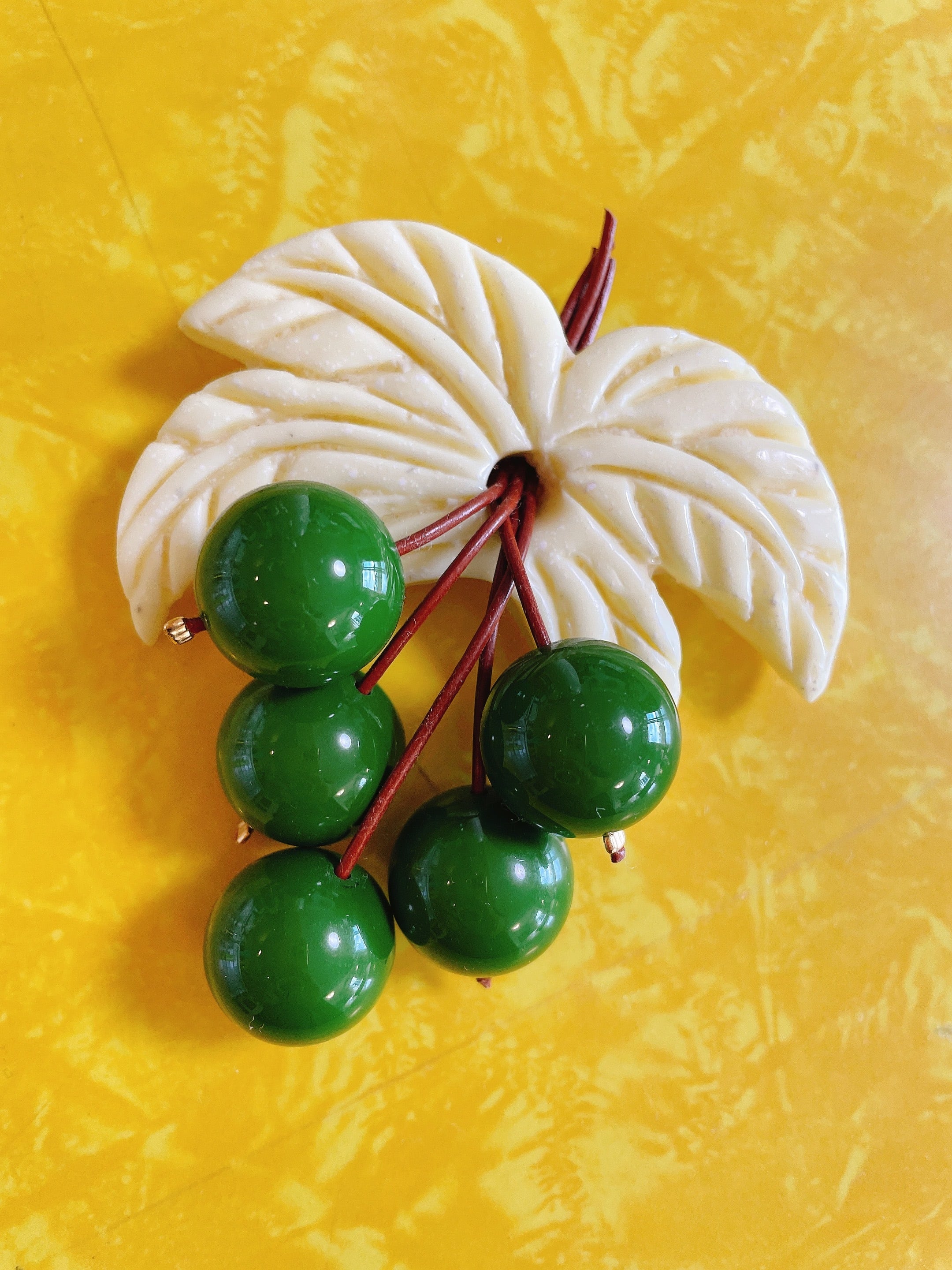 グリーンの玉が可愛いい40sスタイルのブローチです。