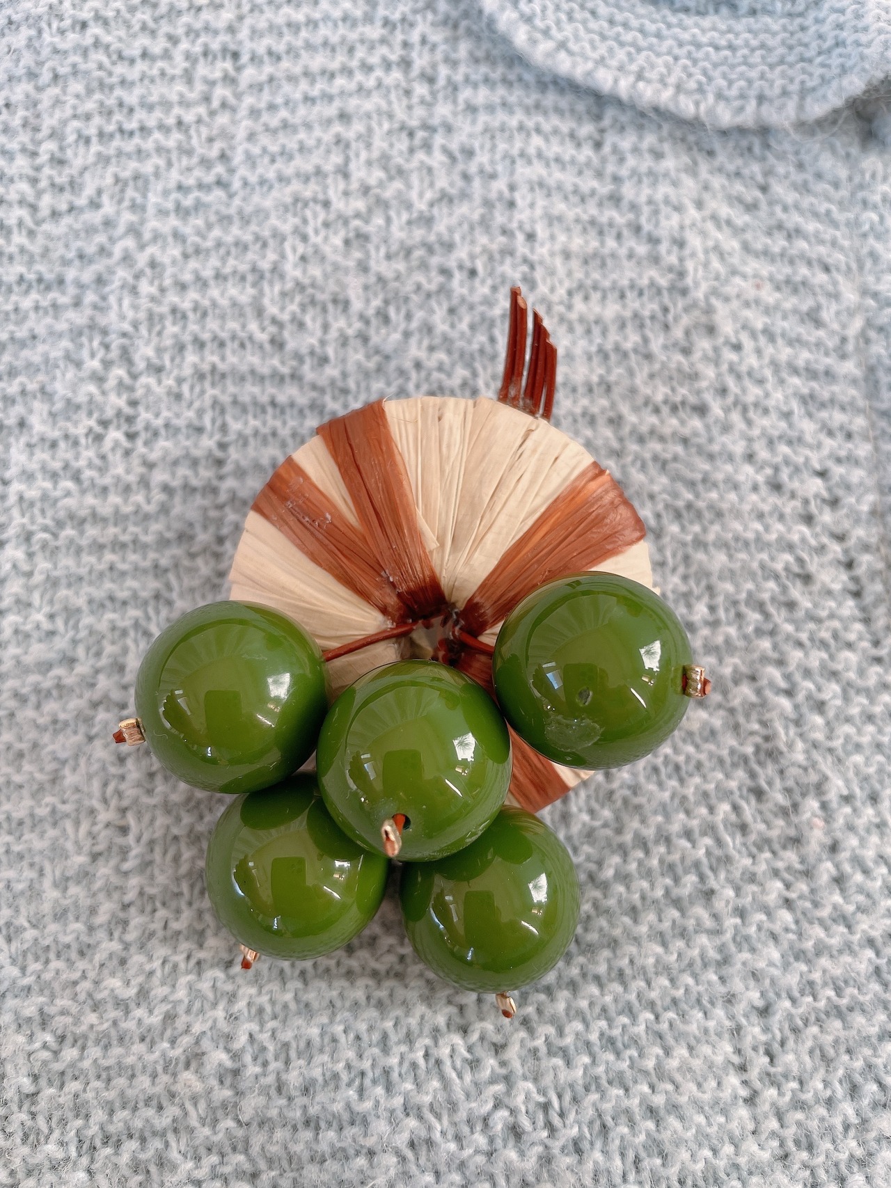 bakeliteのようなグリーンが綺麗なCherry broochです。