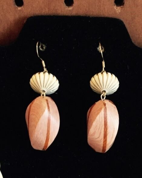 ローズウッドでできたピアス。